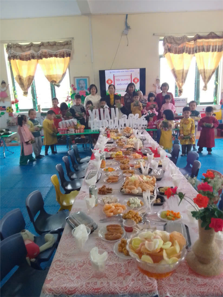 Tiệc buffe nhằm mang đến cho các bé những trải nghiệm thú vị và rèn luyện kỹ năng tự phục vụ, nhà trường đã tổ chức bữa tiệc buffet dành cho các bé mầm non với nhiều món ăn hấp dẫn, đầy đủ dinh dưỡng.