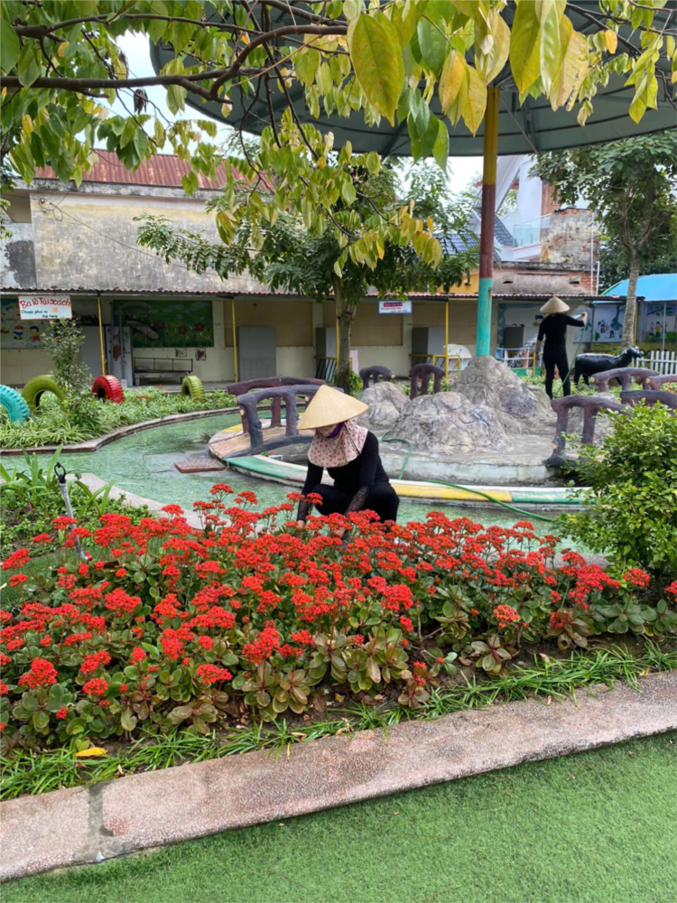 Giờ hoạt động lao động ngoài sân trường nhằm tạo môi trường xanh – sạch – đẹp, an toàn cho các hoạt động của trẻ. Giáo viên tham gia quét dọn sân trường, thu gom rác, chăm sóc cây xanh và khu vui chơi ngoài trời. Các công việc được thực hiện đúng phân công, đảm bảo an toàn lao động và vệ sinh môi trường. Giáo viên phối hợp, hỗ trợ lẫn nhau, phát huy tinh thần trách nhiệm và ý thức tập thể. Hoạt động lao động góp phần duy trì cảnh quan sư phạm, phòng tránh nguy cơ mất an toàn cho trẻ. Đây cũng là dịp giáo viên nêu gương, giáo dục trẻ ý thức bảo vệ môi trường và yêu lao động.