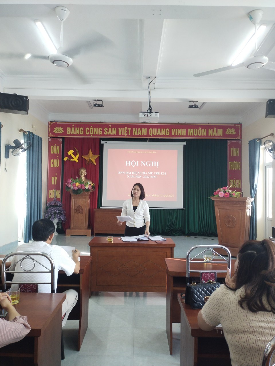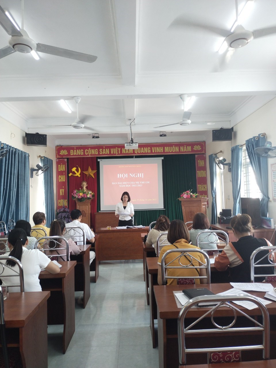 Tại hội nghị, đồng chí Đào Thị Lý - Bí thư chi bộ - Hiệu trưởng nhà trường đã thông qua báo cáo kết quả thực hiện nhiệm vụ năm học 2021 - 2022 và đề ra phương hướng, kế hoạch thực hiện nhiệm vụ năm học 2022-2023 và thống nhất về nội dung, chương trình CSGD trẻ cũng như các khoản thu trong năm học 2022 – 2023.