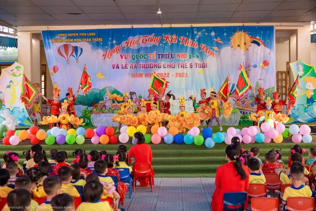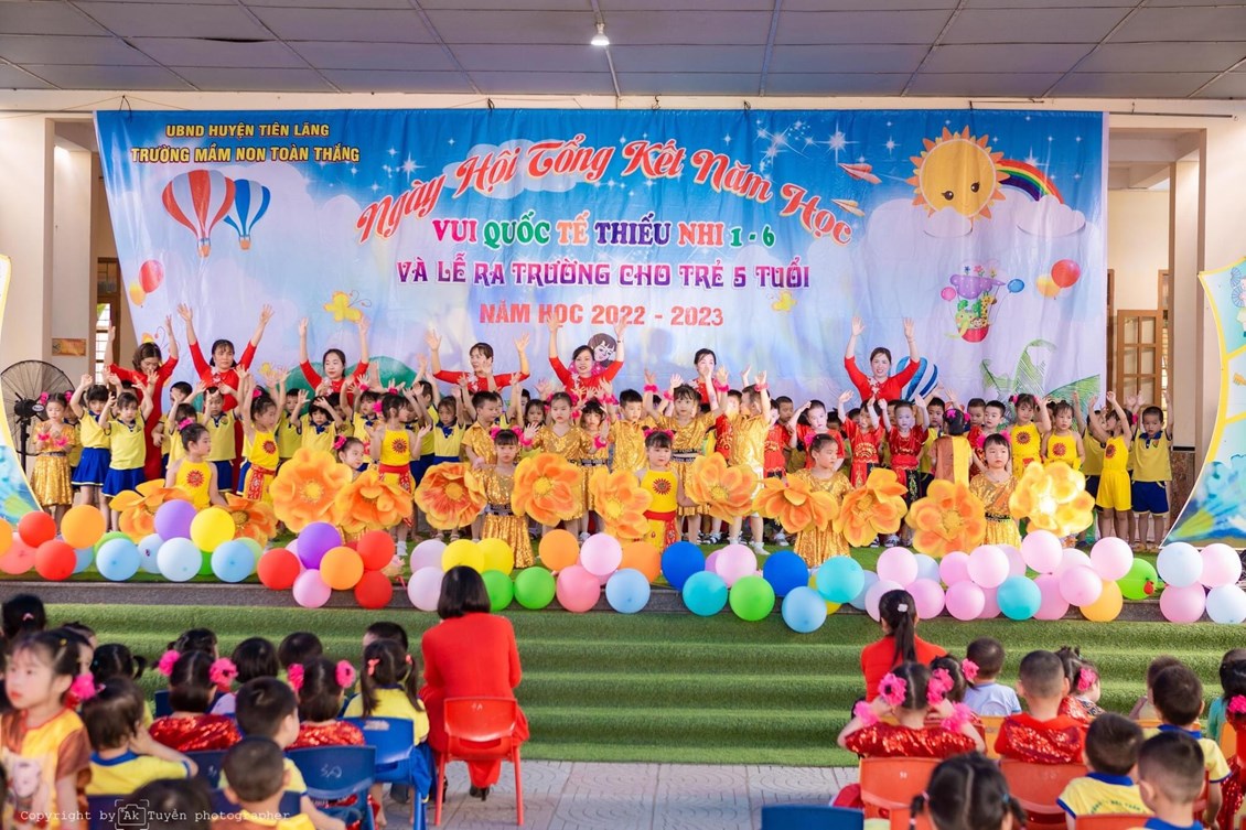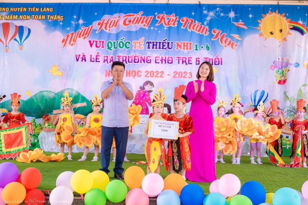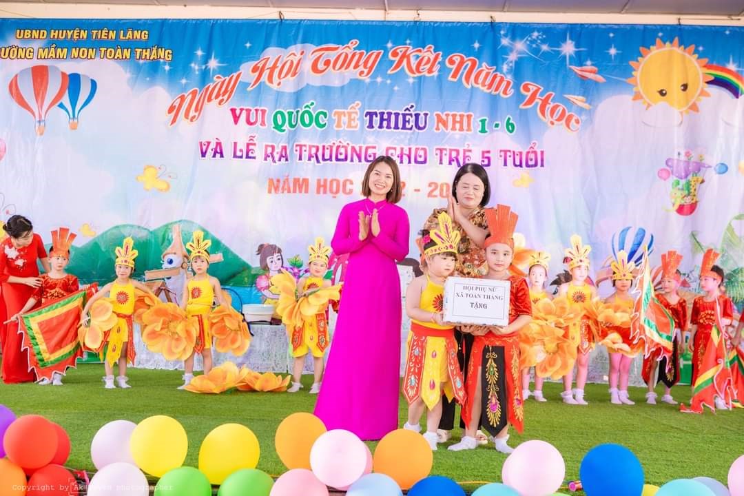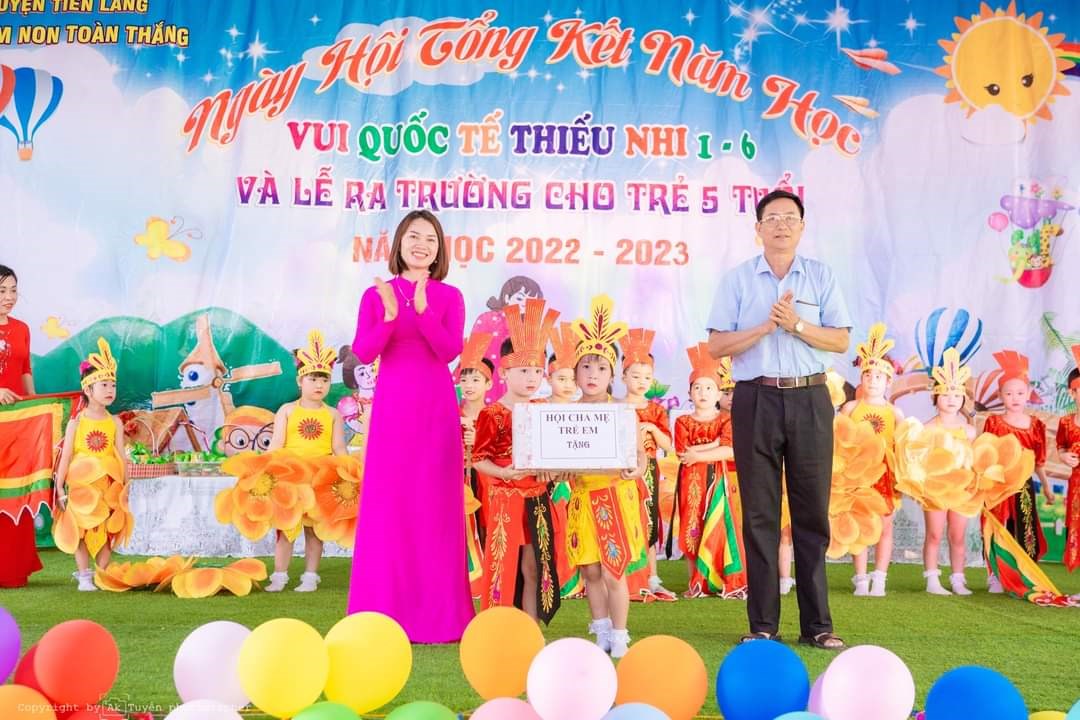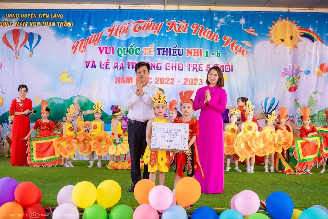 Ông: Vũ Văn Bản - Phó Bí thư Đảng ủy, PCT UBND xã - Đại diện cho Đảng ủy, HĐND, UBND, UBMTTQVN xã Toàn Thắng tặng quà cho cô và các cháu Trường MN Toàn Thắng