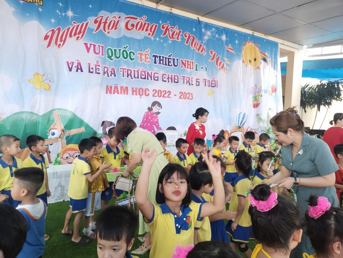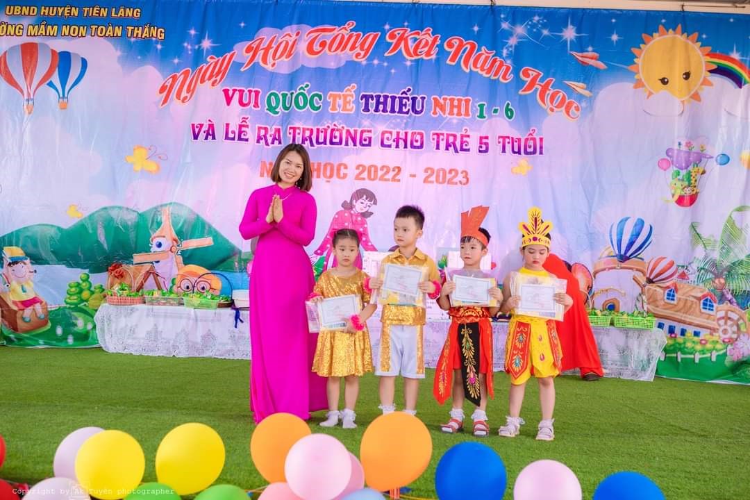 Cô Đào Thị Lý - Bí thư Chi bộ, Hiệu trưởng nhà trường trao giấy khen và phần thưởng cho các cháu