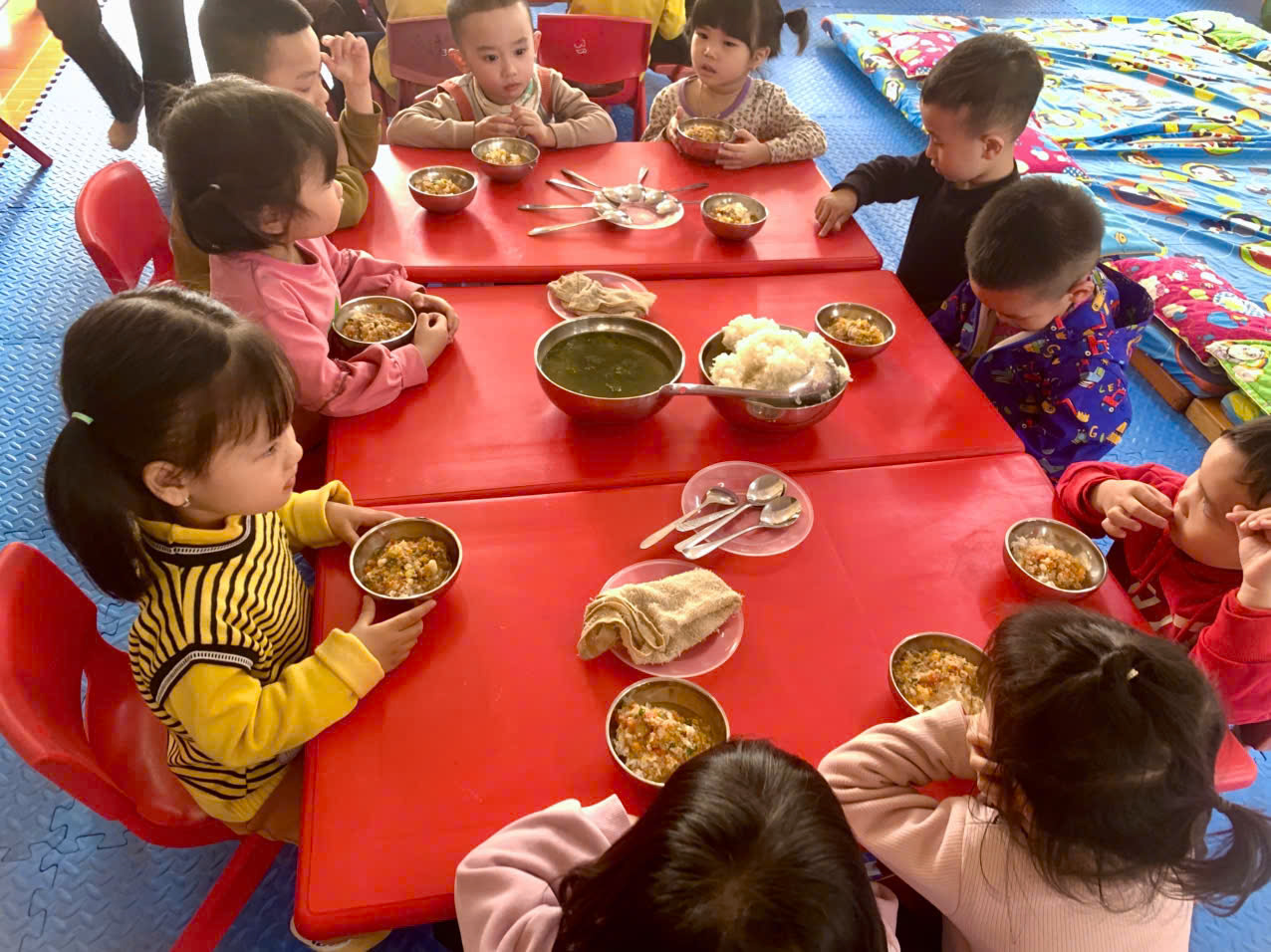Cơ thể trẻ lứa tuổi mầm non đang trong giai đoạn phát triển rất nhanh, đòi hỏi khẩu phần ăn phải đầy đủ cả về chất lượng và số lượng. Tại trường mầm non Toàn Thắng, trẻ mẫu giáo được ăn hai bữa/ngày bao gồm 1 bữa chính trưa và một bữa phụ trong đó bữa chính trưa là quan trọng nhất. Thông qua bữa ăn trưa, trẻ được bù đắp những năng lượng đã bị tiêu hao và cung cấp năng lượng mới để tham gia vào các hoạt động tiếp theo. Vì vậy việc tổ chứa bữa ăn cho trẻ ở trường mầm non là một trong những nhiệm vụ quan trọng trong quá trình chăm sóc- nuôi dưỡng- giáo dục trẻ.