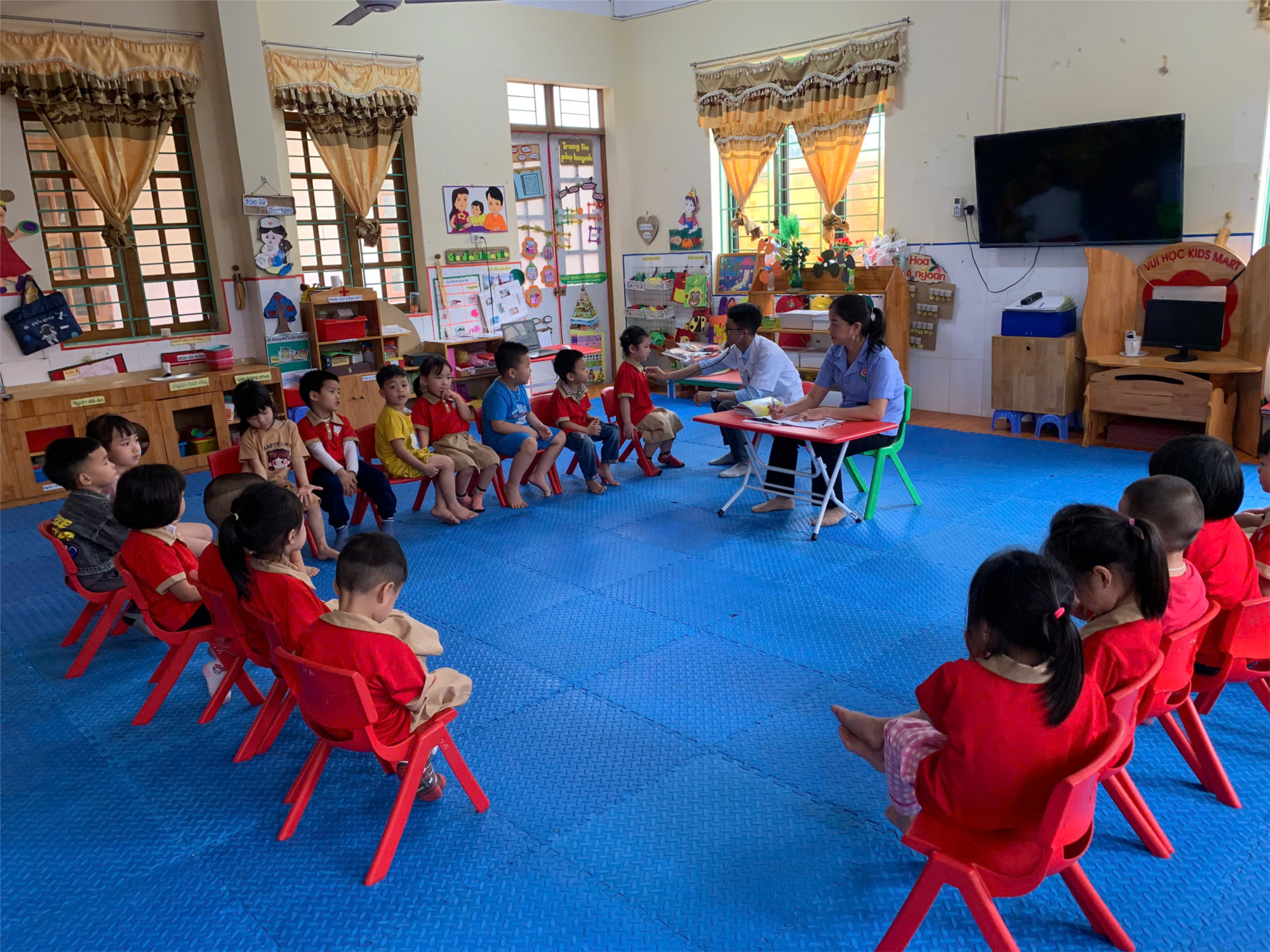 Trường Mầm non Toàn Thắng Phối hợp với trạm y tế xã Tân Minh khám sức khỏe định kỳ lần 2 cho trẻ năm học 2024-2025