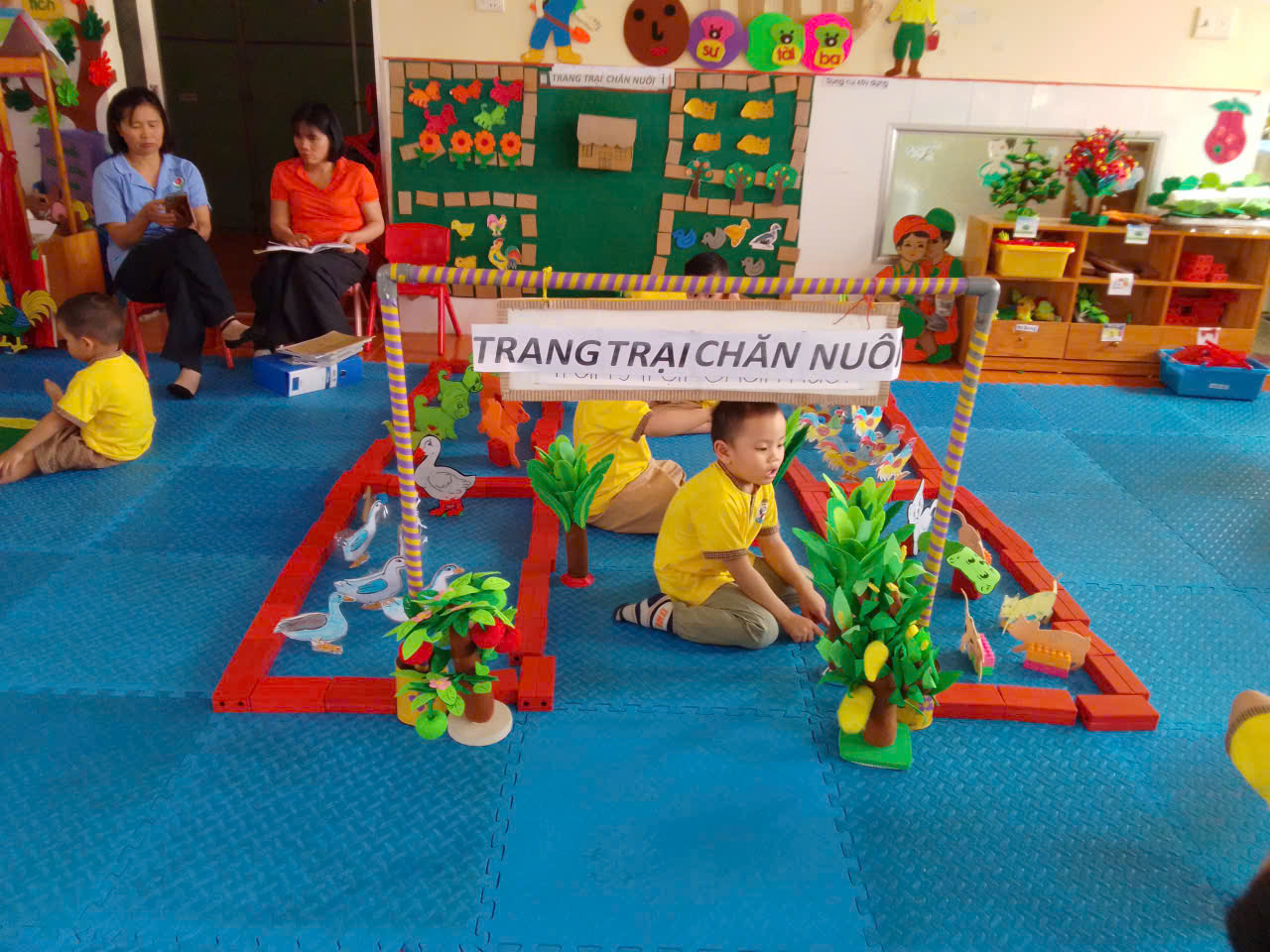 Hoạt động góc với chủ đề “Con vật sống trong gia đình” được tổ chức linh hoạt, hấp dẫn, tạo cơ hội cho trẻ 3–4 tuổi được học thông qua chơi một cách tự nhiên và hiệu quả. Trong không gian lớp học được bố trí các góc chơi phong phú như góc phân vai, góc xây dựng, góc nghệ thuật, góc học tập…, trẻ được tự do lựa chọn hoạt động theo sở thích của mình. Ở góc phân vai, trẻ nhập vai làm người chăm sóc vật nuôi như cho mèo ăn, tắm cho chó, thể hiện sự yêu thương và trách nhiệm. Tại góc xây dựng, trẻ sử dụng các khối để tạo chuồng trại cho gà, vịt, rèn luyện khả năng sáng tạo và phối hợp nhóm. Góc nghệ thuật giúp trẻ tô màu, nặn, xé dán hình các con vật quen thuộc, phát triển khả năng thẩm mỹ và sự khéo léo của đôi tay. Trong khi đó, góc học tập hỗ trợ trẻ nhận biết tên gọi, đặc điểm, tiếng kêu của các con vật thông qua tranh ảnh, thẻ chữ đơn giản. Trong suốt quá trình chơi, cô giáo đóng vai trò là người hướng dẫn, quan sát, gợi mở và hỗ trợ khi cần thiết, giúp trẻ mở rộng hiểu biết và phát triển kỹ năng giao tiếp. Hoạt động không chỉ giúp trẻ củng cố kiến thức về các con vật nuôi mà còn hình thành kỹ năng hợp tác, chia sẻ và tuân thủ quy tắc khi chơi. Qua đó, trẻ thêm yêu quý các con vật gần gũi, biết chăm sóc và bảo vệ chúng. Tiết hoạt động góc diễn ra trong không khí vui tươi, thoải mái, giúp trẻ phát triển toàn diện cả về nhận thức, ngôn ngữ, tình cảm và kỹ năng xã hội.