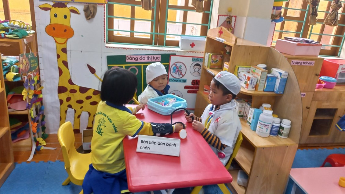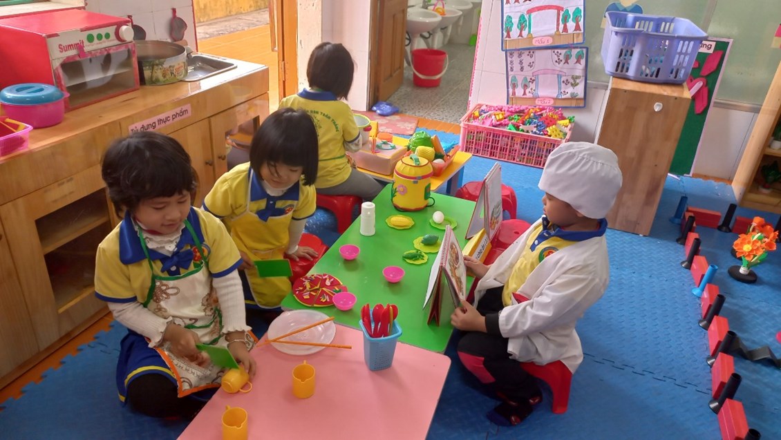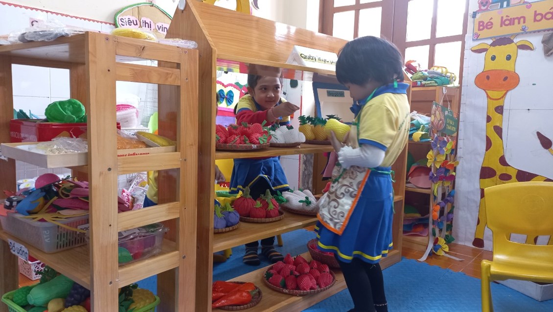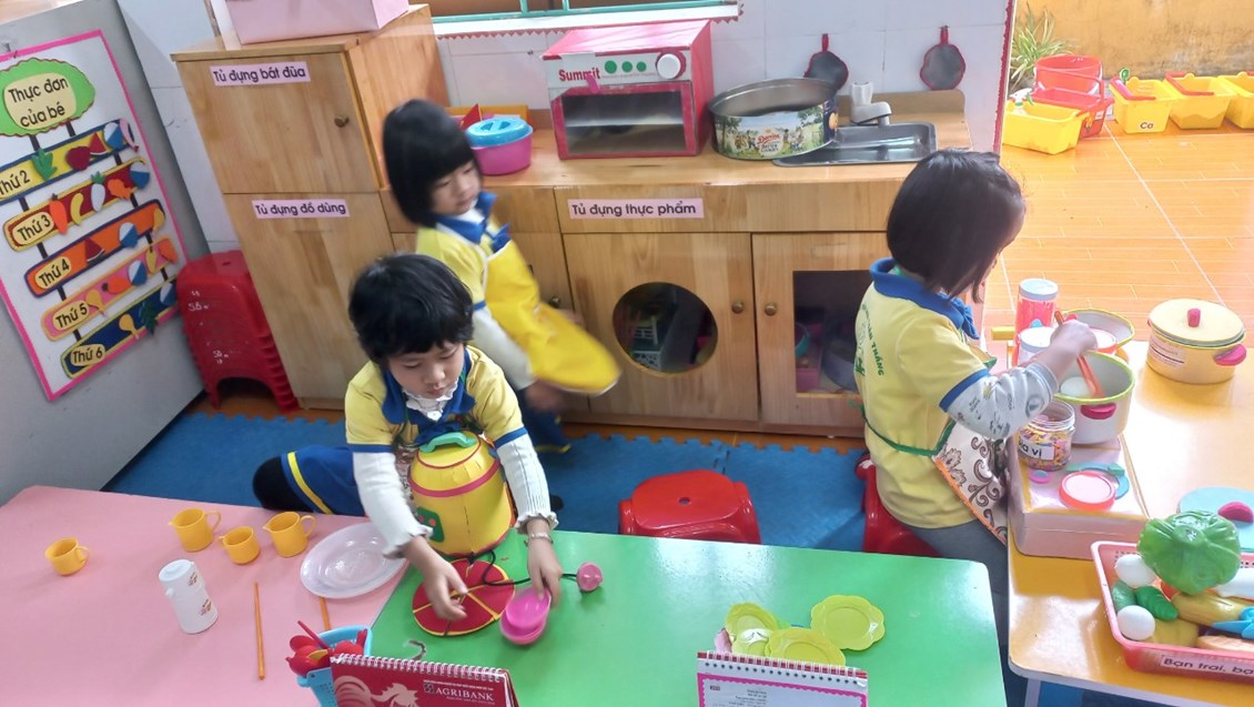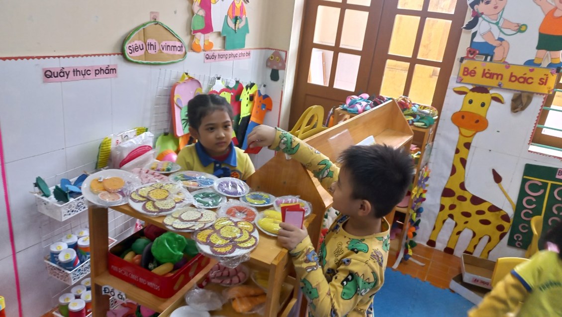 Nhờ hoạt động góc, các bé được tham gia vào xã hội người lớn