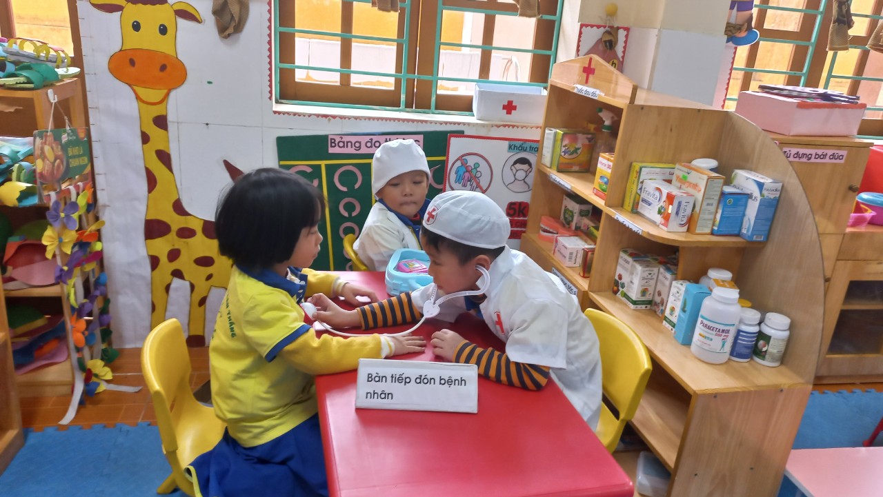 Góc phân vai: Trẻ sẽ đóng vai bác sĩ thể hiện mình là một