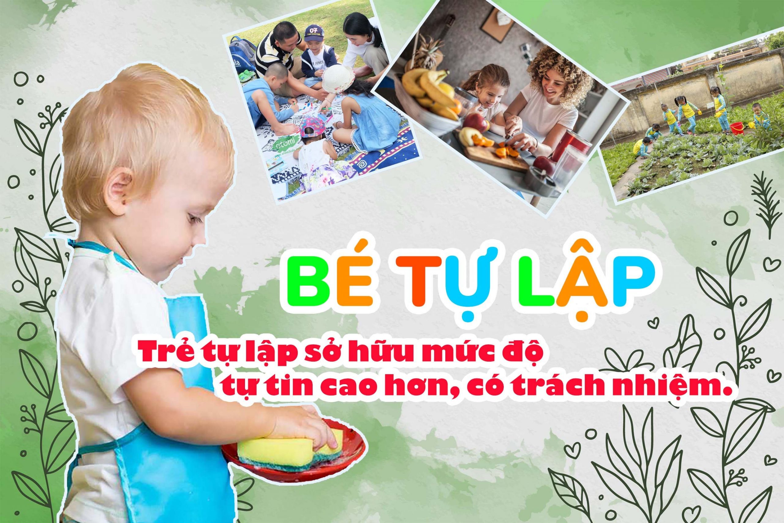 thức ăn, tự đánh răng, tự mặc quần áo, tự cất đồ chơi sau khi chơi xong...