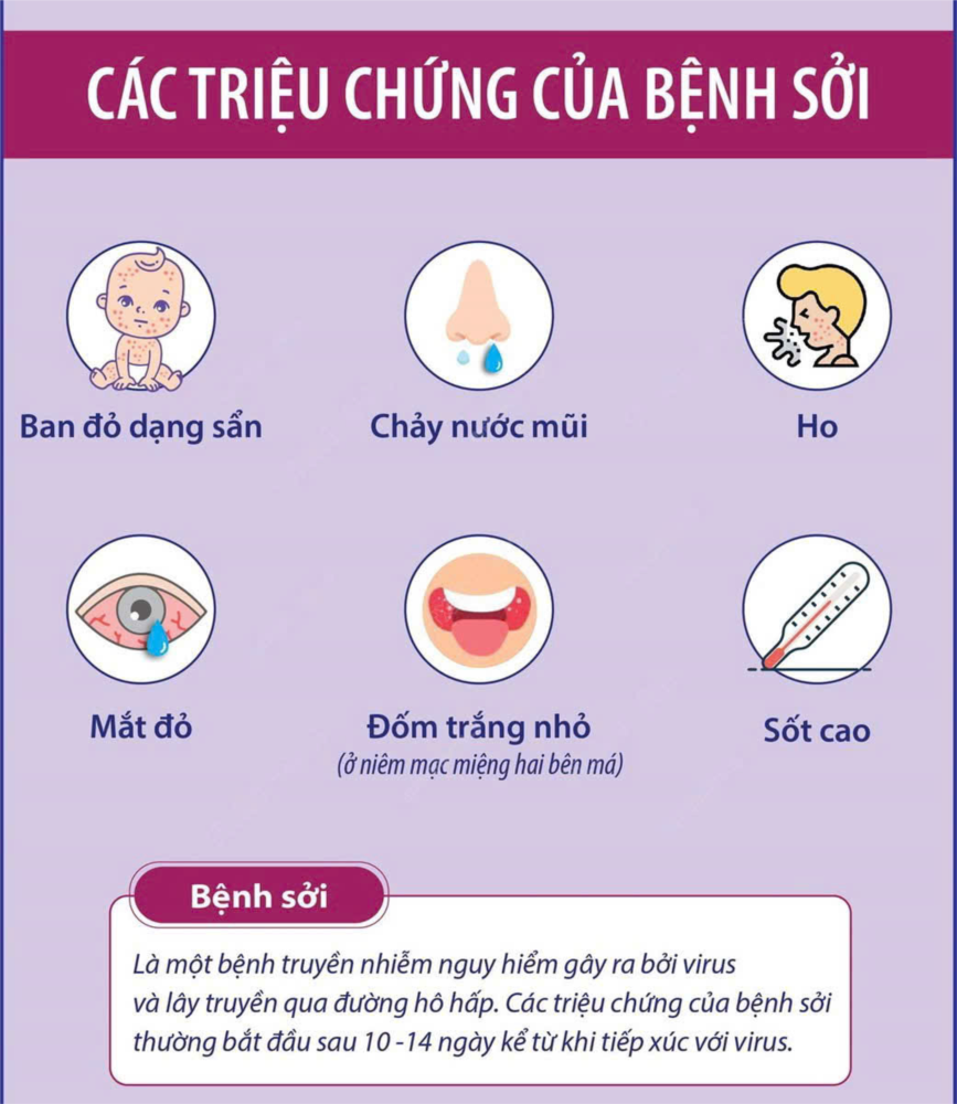 Triệu chứng ban đầu của bệnh sởi bao gồm sốt, ho, chảy nước mũi và phát ban. Hiện nay, bệnh sởi chưa có thuốc điều trị đặc hiệu, do đó, tiêm vaccine là biện pháp phòng bệnh hiệu quả nhất. Bộ Y tế khuyến cáo người dân, đặc biệt là trẻ em, cần được tiêm chủng đầy đủ và đúng lịch.