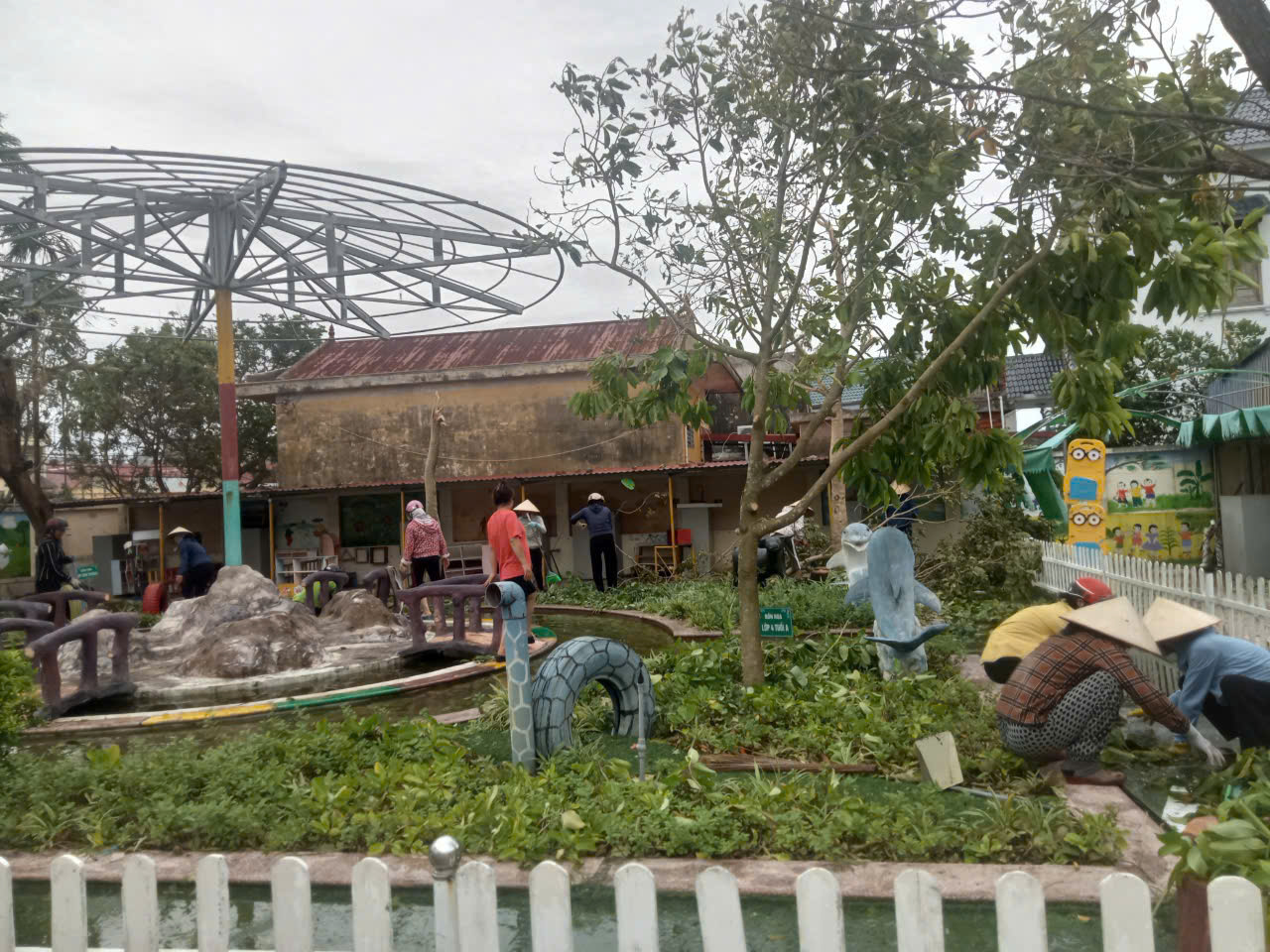 Để chủ động phòng tránh dịch bệnh sau mưa, để tránh dịch bệnh và đảm bảo các điều kiện an toàn cho các bé quay trở lại trường. Các cô giáo trường mầm non Toàn Thắng đã tổng vệ sinh môi trường, dọn các vũng nước đọng, chặt các cành, cây gẫy đổ, giặt thảm và phơi khô.