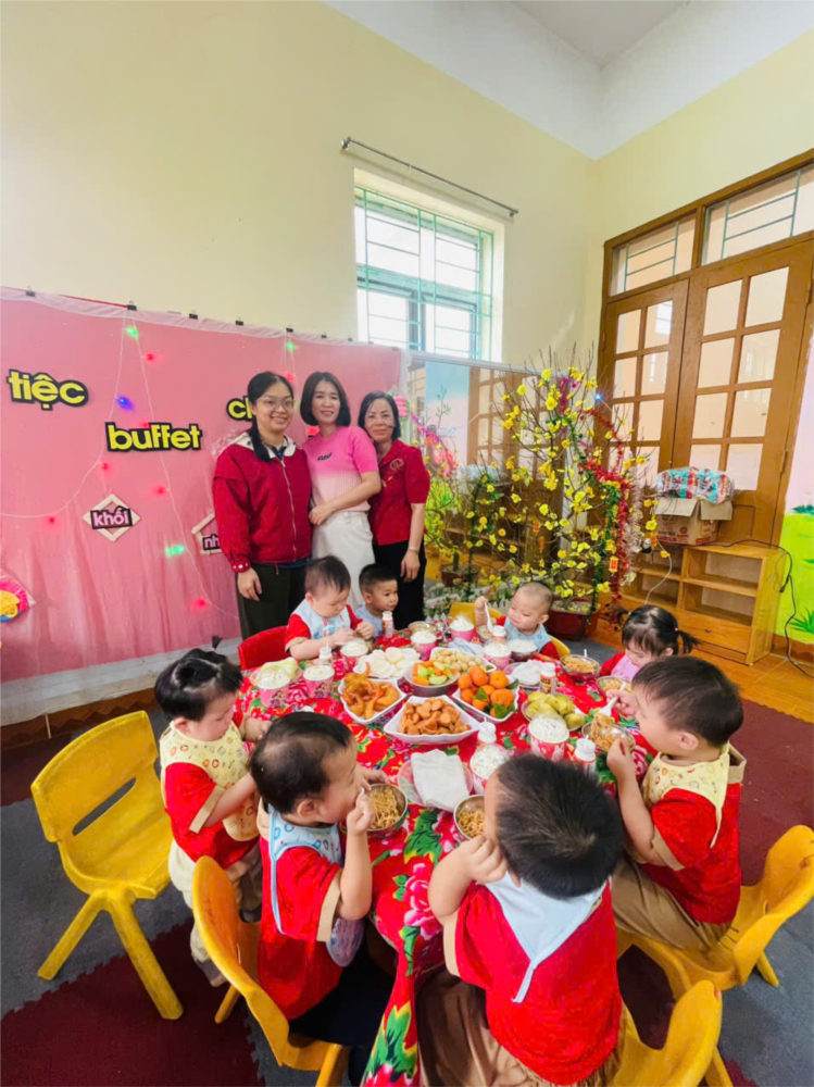 Không khí buổi tiệc tràn ngập niềm vui khi các bé hào hứng thử các món ăn mới, chia sẻ cùng bạn bè và biết nói lời cảm ơn khi được cô giáo hướng dẫn. Đây không chỉ là một bữa tiệc mà còn là cơ hội để trẻ phát triển kỹ năng giao tiếp, sự tự lập và thói quen ăn uống lành mạnh.