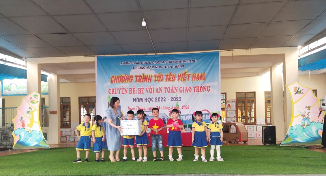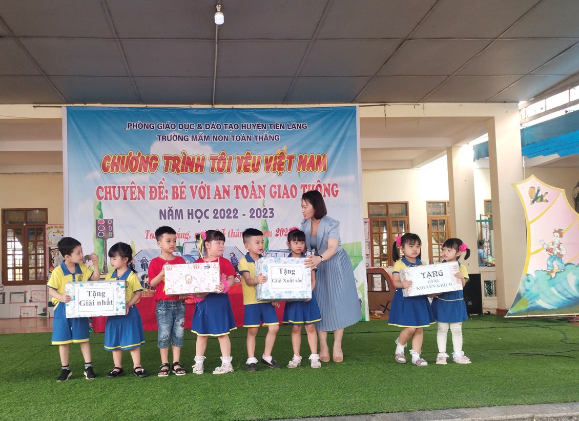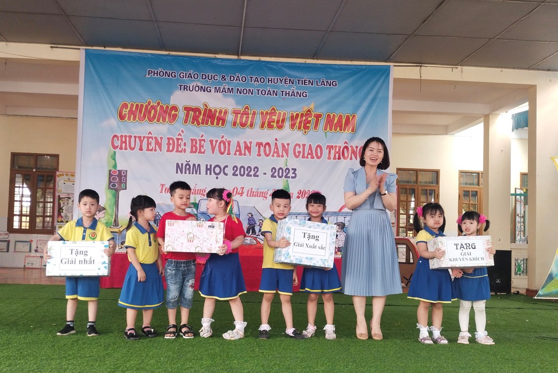 Cô Đào Thị Lý - Bí thư chi bộ, hiệu trưởng nhà trường tặng thưởng cho các đội