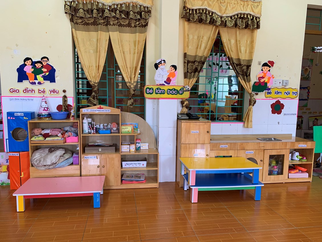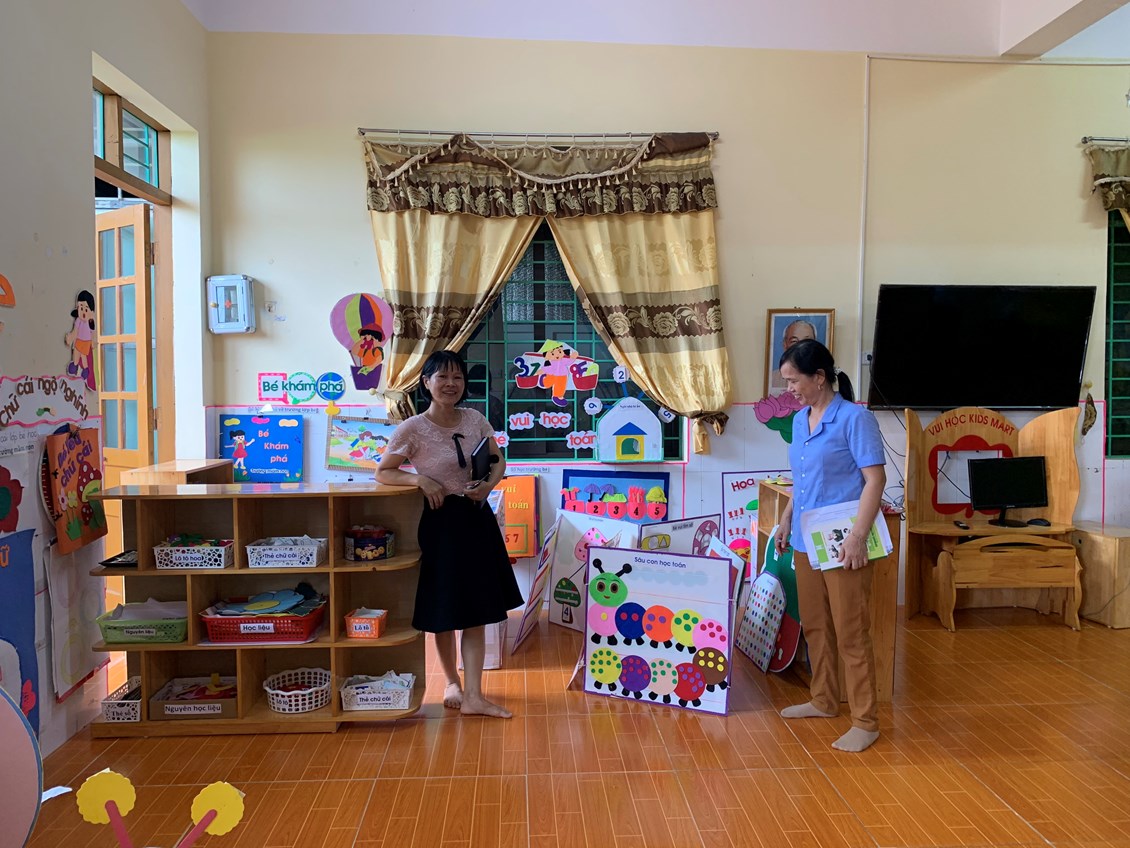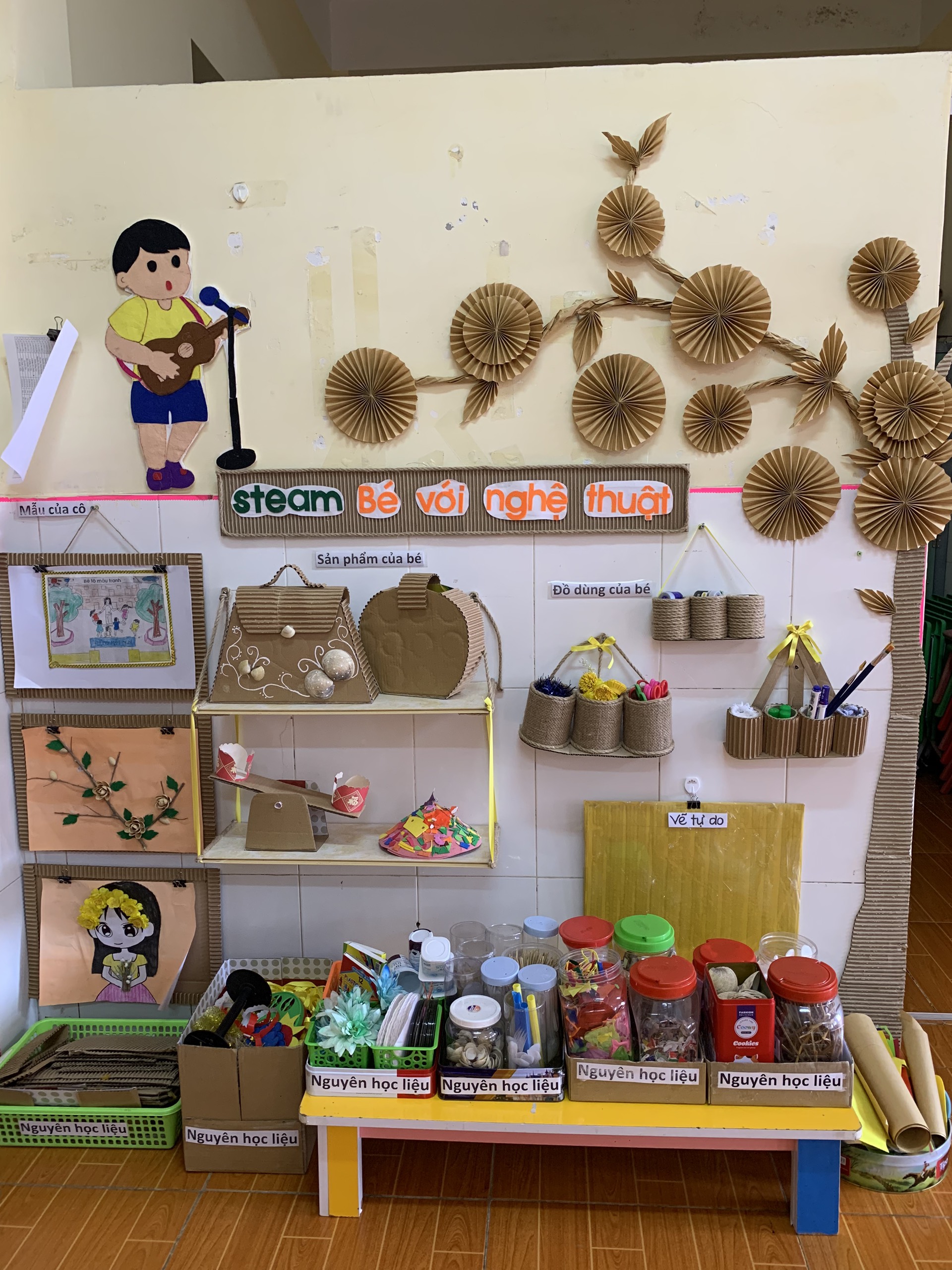 Với sự nhiệt huyết, yêu nghề và khả năng sáng tạo của mình, các cô giáo lớp 5 tuổi A đã không ngừng tìm tòi học hỏi, sưu tầm các loại nguyên vật liệu phế thải để tạo ra nhiều đồ dùng đồ chơi, áp dụng các phương pháp giáo dục tiên tiến vào các góc cho trẻ vui chơi và hoạt động.