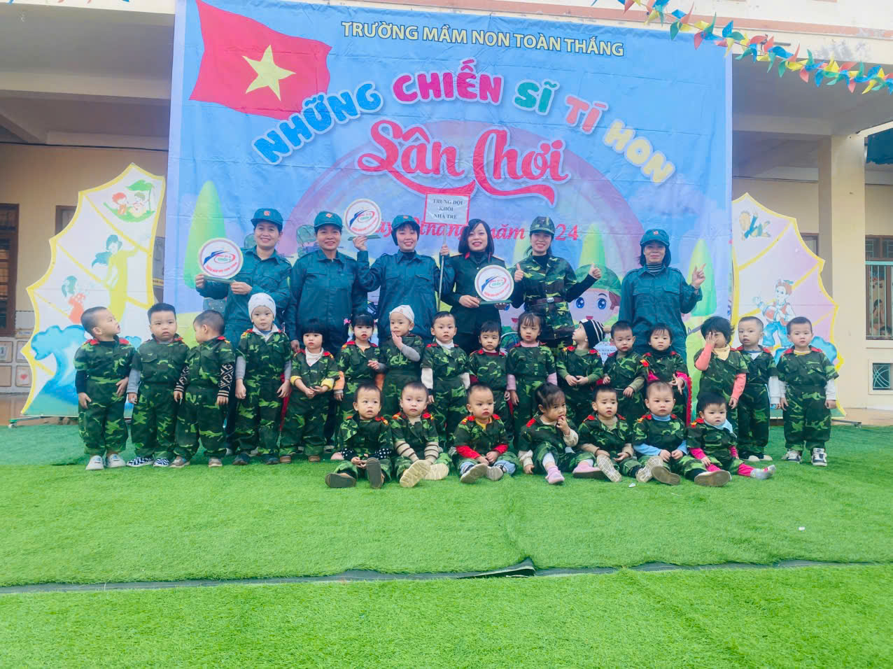 Ngày 20/12/2024, trường mầm non Toàn Thắng đã tổ chức Ngày hội “Chiến sĩ tí hon” vô cùng ý nghĩa và vui nhộn. Ngày hội là cơ hội để các bé hiểu thêm về ý nghĩa của ngày 22/12, lòng biết ơn đối với các chú bộ đội đã bảo vệ Tổ quốc. Đồng thời, hoạt động còn giúp rèn luyện tinh thần đoàn kết, kỷ luật, sự tự tin và năng động cho các chiến sĩ nhí của chúng ta.