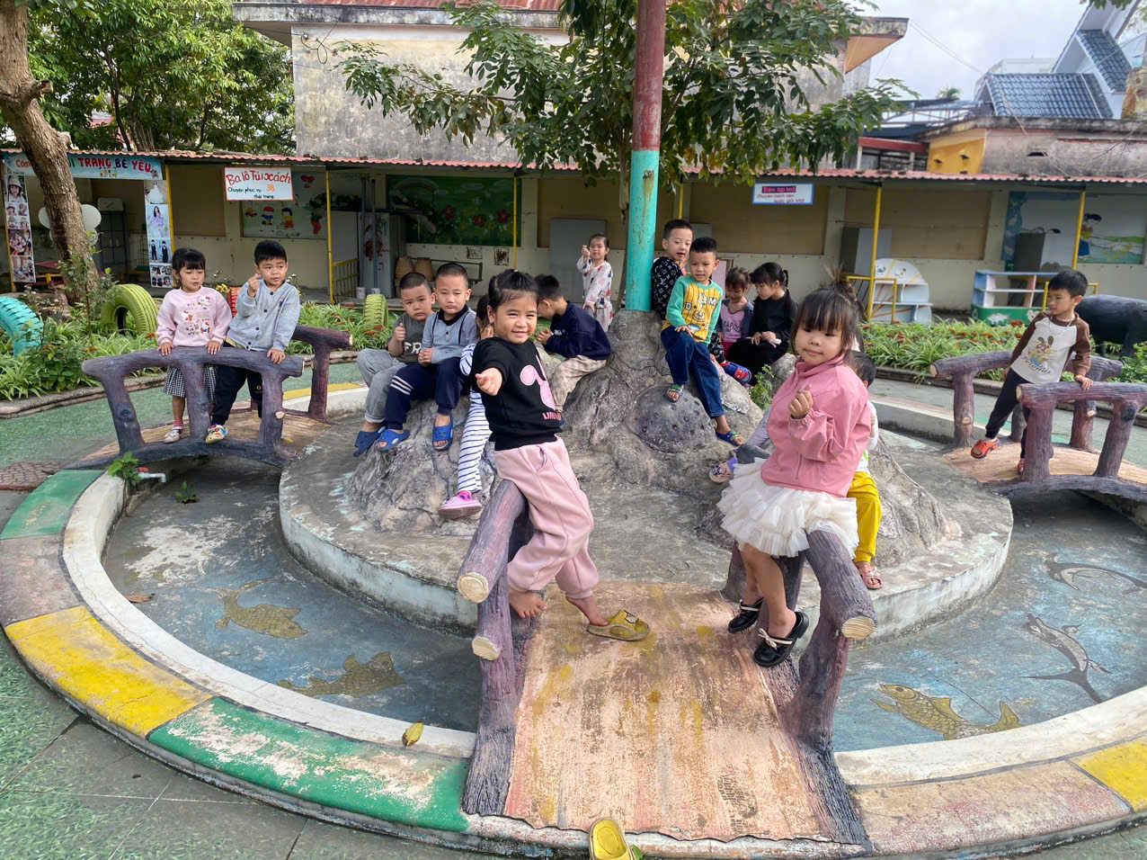Buổi sáng, sân trường rộn ràng tiếng cười khi các bé 4–5 tuổi háo hức tham gia hoạt động ngoài trời. Dưới ánh nắng dịu nhẹ, những bước chân nhỏ xinh chạy nhảy khắp khoảng sân quen thuộc. Các con cùng nhau quan sát cây cối, lắng nghe tiếng chim hót và cảm nhận làn gió mát lành. Có bạn say mê nhặt lá, có bạn thích thú khám phá những điều mới lạ xung quanh. Trò chơi vận động diễn ra sôi nổi, giúp các con rèn luyện sức khỏe và sự nhanh nhẹn. Tiếng cười giòn tan vang lên, làm không gian thêm ấm áp và tràn đầy sức sống. Cô giáo luôn bên cạnh hướng dẫn, khích lệ và dõi theo từng khoảnh khắc của trẻ. Hoạt động ngoài trời không chỉ là giờ chơi mà còn là giờ học đầy thú vị. Các con học cách quan sát, giao tiếp và hợp tác với bạn bè. Từng trải nghiệm nhỏ góp phần nuôi dưỡng sự tự tin và lòng yêu thiên nhiên. Sân trường trở thành nơi ươm mầm những cảm xúc trong trẻo và hồn nhiên. Những giây phút vui chơi giúp các con thêm gắn bó với bạn bè và cô giáo. Ánh mắt rạng rỡ, nụ cười tươi tắn là minh chứng cho niềm vui của trẻ. Tuổi thơ của các con được tô điểm bằng những ký ức đẹp đẽ như thế. Và mỗi ngày đến trường lại là một hành trình khám phá đầy sắc màu. 🌼