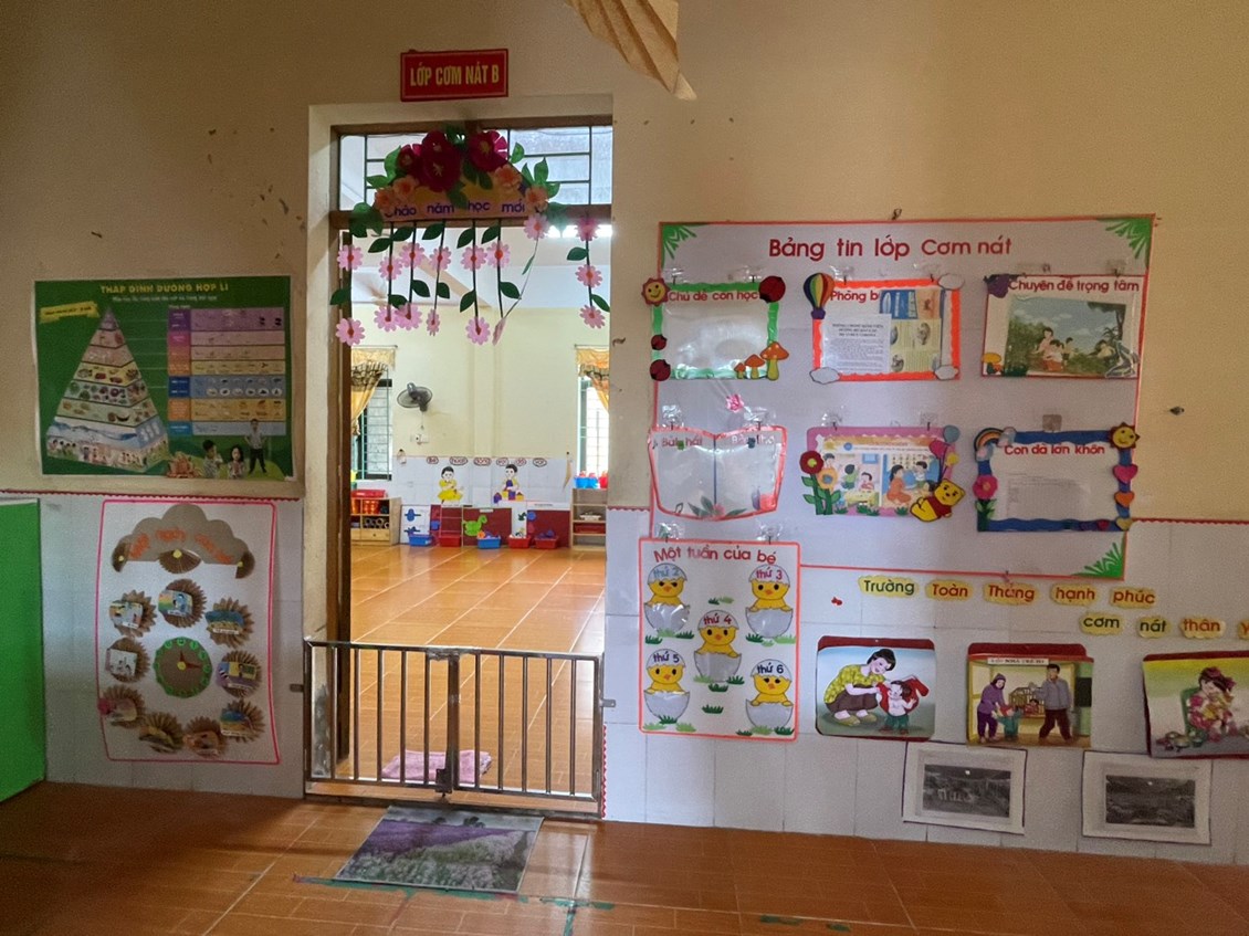 Từ những kinh nghiệm và ý tưởng trang trí môi trường đó giáo viên lop com nat đã kết hợp với phụ huynh chuẩn bị công tác trang trí môi trường ngoài lớp sạch sẽ và chú trong “Xây dựng trường mầm non lấy trẻ làm trung tâm’’.