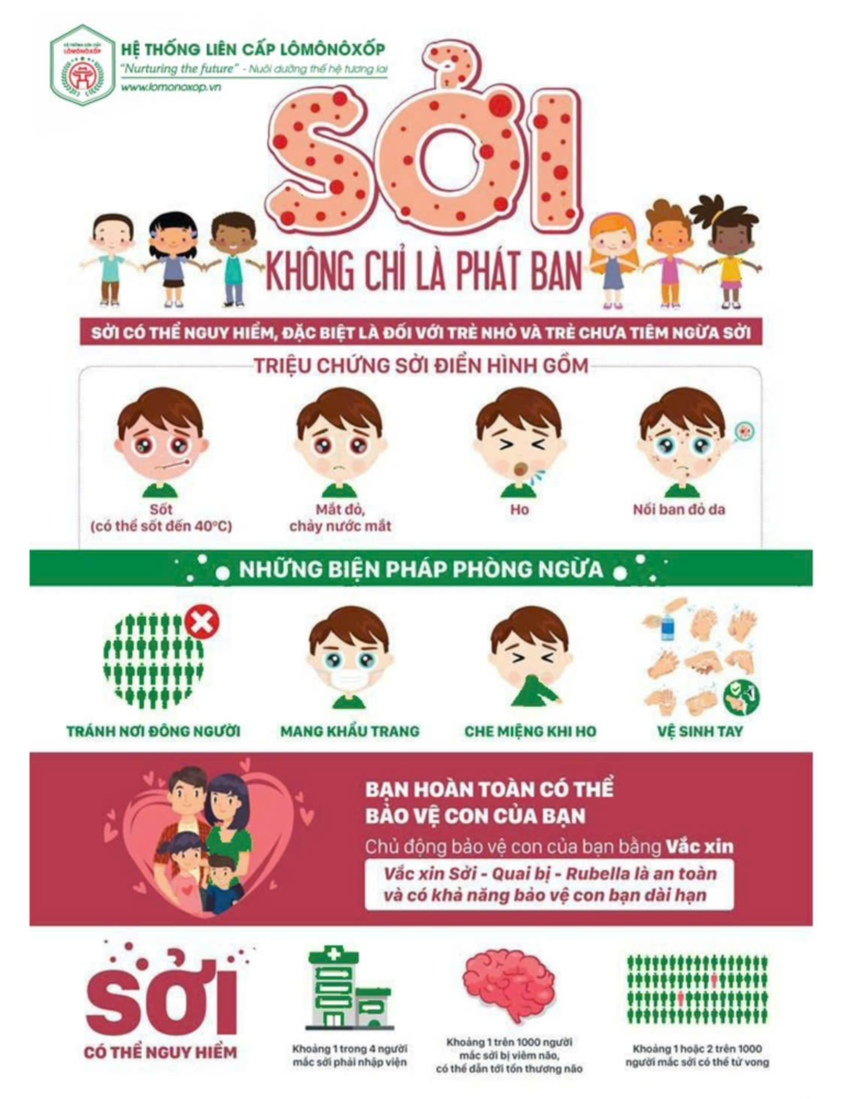 Bệnh sởi ở trẻ em tuy có khả năng tiến triển nhanh và dễ gặp biến chứng nguy hiểm nhưng có thể phòng ngừa bằng việc tiêm vắc xin và chăm sóc vệ sinh cá nhân. Cha mẹ cần nhận biết sớm các dấu hiệu của bệnh để giúp trẻ can thiệp điều trị kịp thời.