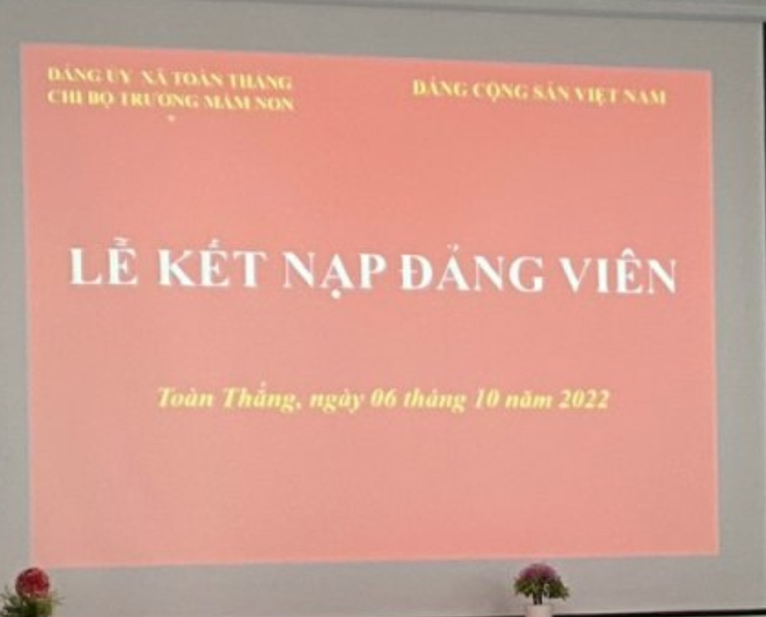 Căn cứ vào Điều lệ Đảng Cộng sản Việt Nam. Xét đơn xin vào đảng của quần chúng ưu tú Lương Thị Thủy. Chiều ngày 06 tháng 10 năm 2022 Chi bộ trường mầm non Toàn Thắng đã tổ chức kết nạp cho quần chứng ưu tú Lương Thị Thủy – Kế toán trường mầm non Toàn Thắng vào Đảng Cộng sản Việt Nam.