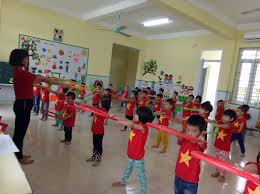 -Trẻ tập trong phòng thể chất.