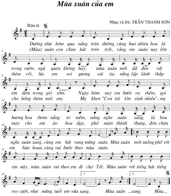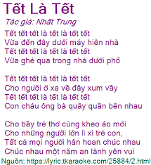 Là một sáng tác của nhạc sĩ Nhất Trung, một bài hát ngắn mà có đến 22 từ Tết được lặp đi lặp lại nhiều lần. Chính điều đó khiến người nghe cảm thấy vui mừng và càng thêm rộn ràng trước không khí xuân sang: