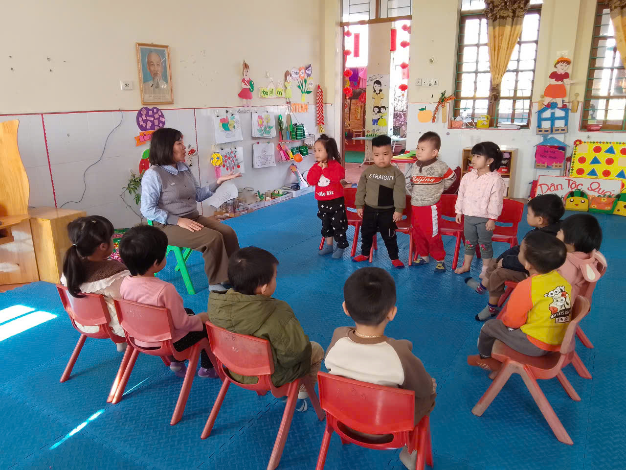 Tiết dạy thơ “Hoa nở” dành cho trẻ 3–4 tuổi giúp trẻ cảm nhận vẻ đẹp nhẹ nhàng của hoa trong thiên nhiên qua lời thơ trong sáng, dễ hiểu. Trẻ được lắng nghe, đọc thơ kết hợp quan sát hình ảnh minh họa sinh động, từ đó phát triển ngôn ngữ, khả năng ghi nhớ và cảm xúc thẩm mỹ. Hoạt động diễn ra nhẹ nhàng, phù hợp với lứa tuổi, tạo cho trẻ sự hứng thú, mạnh dạn tham gia. Qua bài thơ, trẻ được giáo dục tình yêu thiên nhiên và ý thức chăm sóc, bảo vệ cây hoa xung quanh mình.
