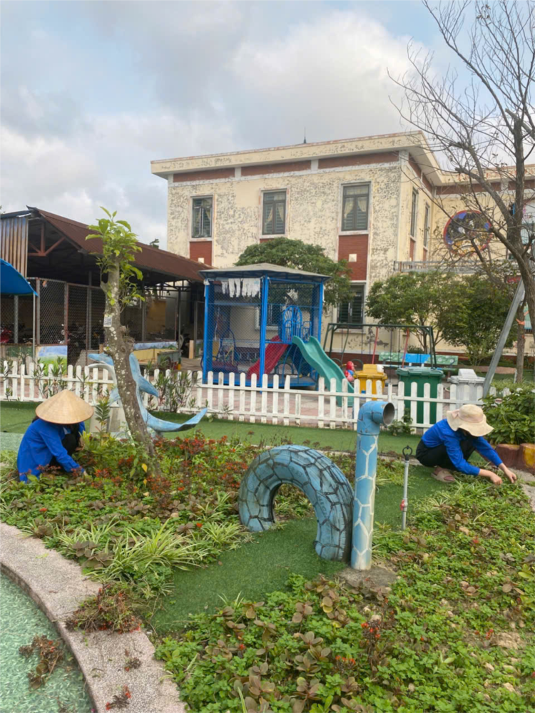 Vì vậy trường MN Toàn Thắng hàng tháng tổ chức các giáo viên nhân viên ra quân tổng vệ sinh toàn trường, luôn giữ môi trường xanh, sạch, đẹp