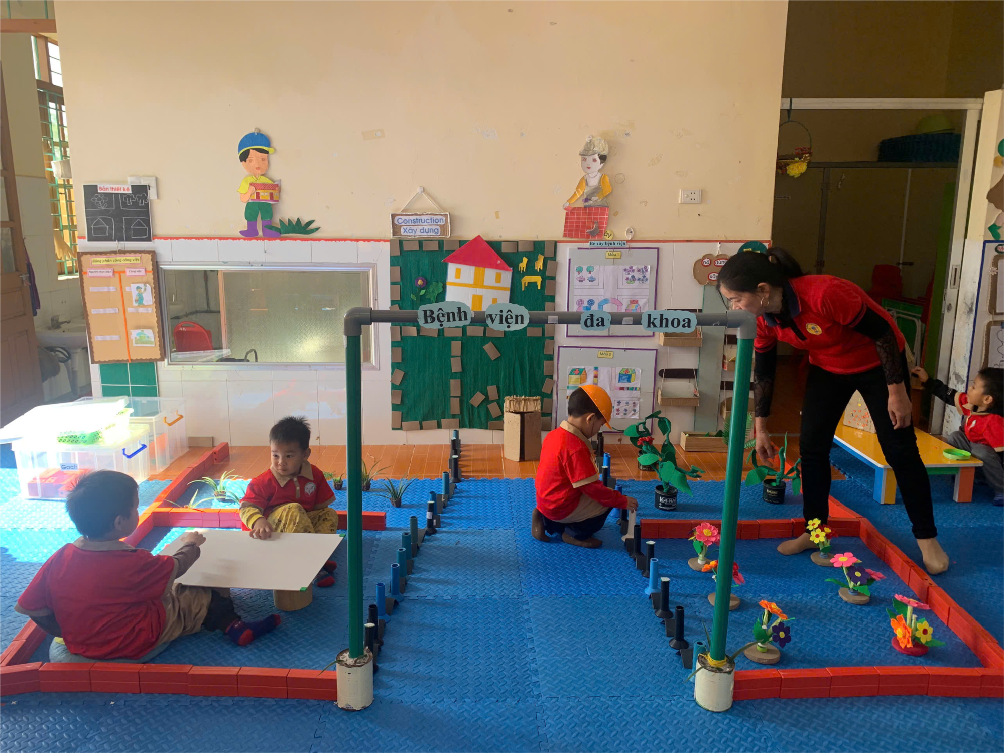 Một số hình ảnh về giờ chơi hoạt động góc của các bé lớp 4 tuổi A