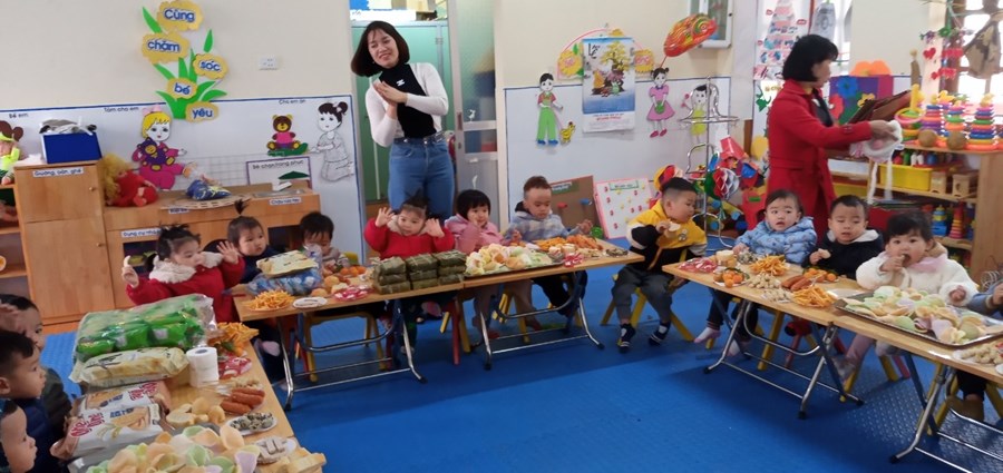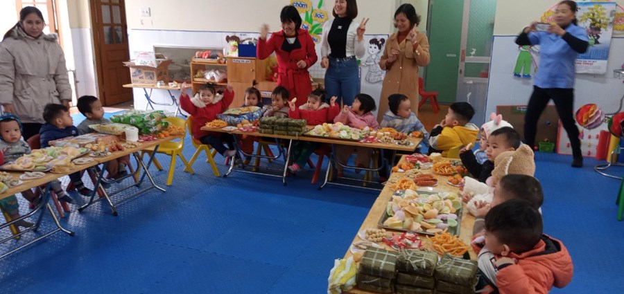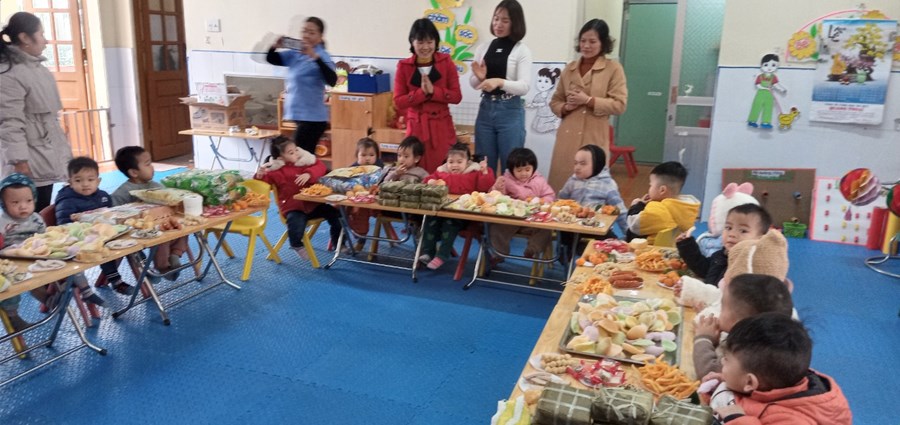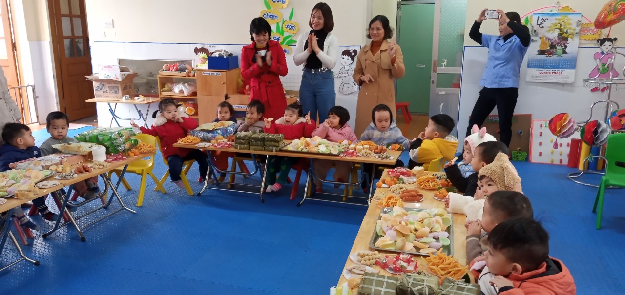 Các bé và các cô giáo trường MN Toàn Thắng hân hoan chuẩn bị Vui Đón Tết!