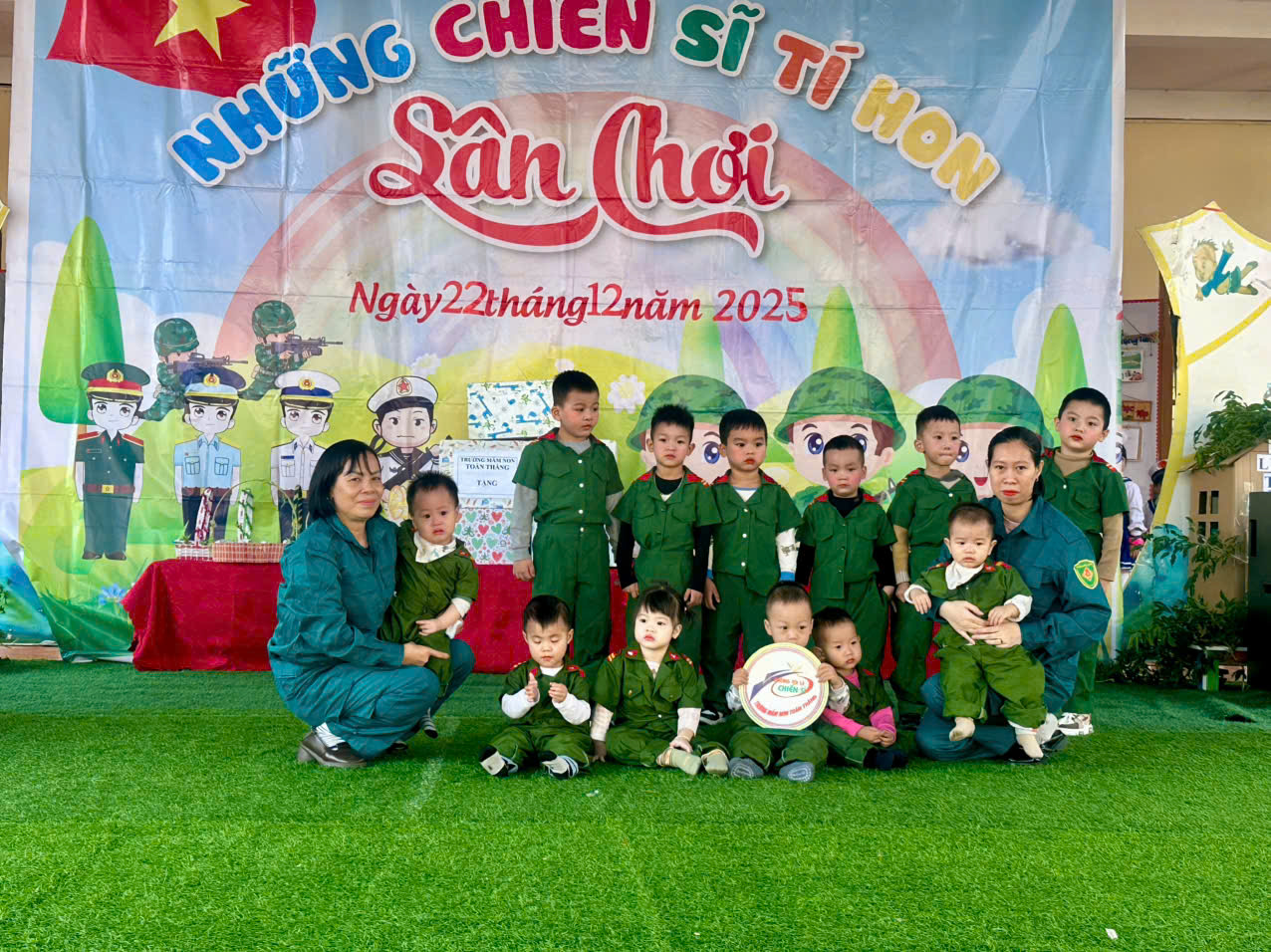 Trong tiếng nhạc hành khúc rộn ràng , các “chiến sĩ nhí” lớp cơm nát đã hăng hái bước vào đợt huấn luyện đặc biệt với chuỗi vận động liên hoàn đầy thử thách: từ vượt chướng ngại vật bò chui , đi trong đường hẹp cho đến di chuyển nhịp nhàng theo hiệu lệnh. Mỗi hoạt động đều là một cơ hội để các con rèn luyện sức khỏe , sự nhanh nhẹn , khéo léo và đặc biệt là tinh thần đồng đội gắn kết.
