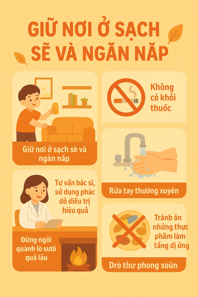 Các biện pháp phổ biến để tránh hen suyễn dị ứng như sau: