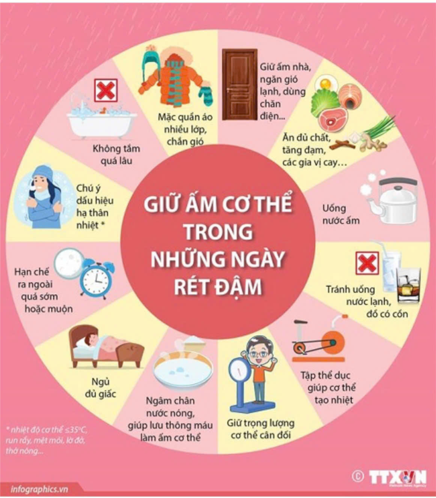 - Giáo viên phụ trách lớp thông báo tới phụ huynh tình hình thời tiết trước khi có rét giúp phụ huynh có sự chuẩn bị chu đáo hơn cho trẻ. Trang bị đủ ấm cho trẻ khi tới trường: khẩu trang, khăn, mũ, tất, áo khoác…
